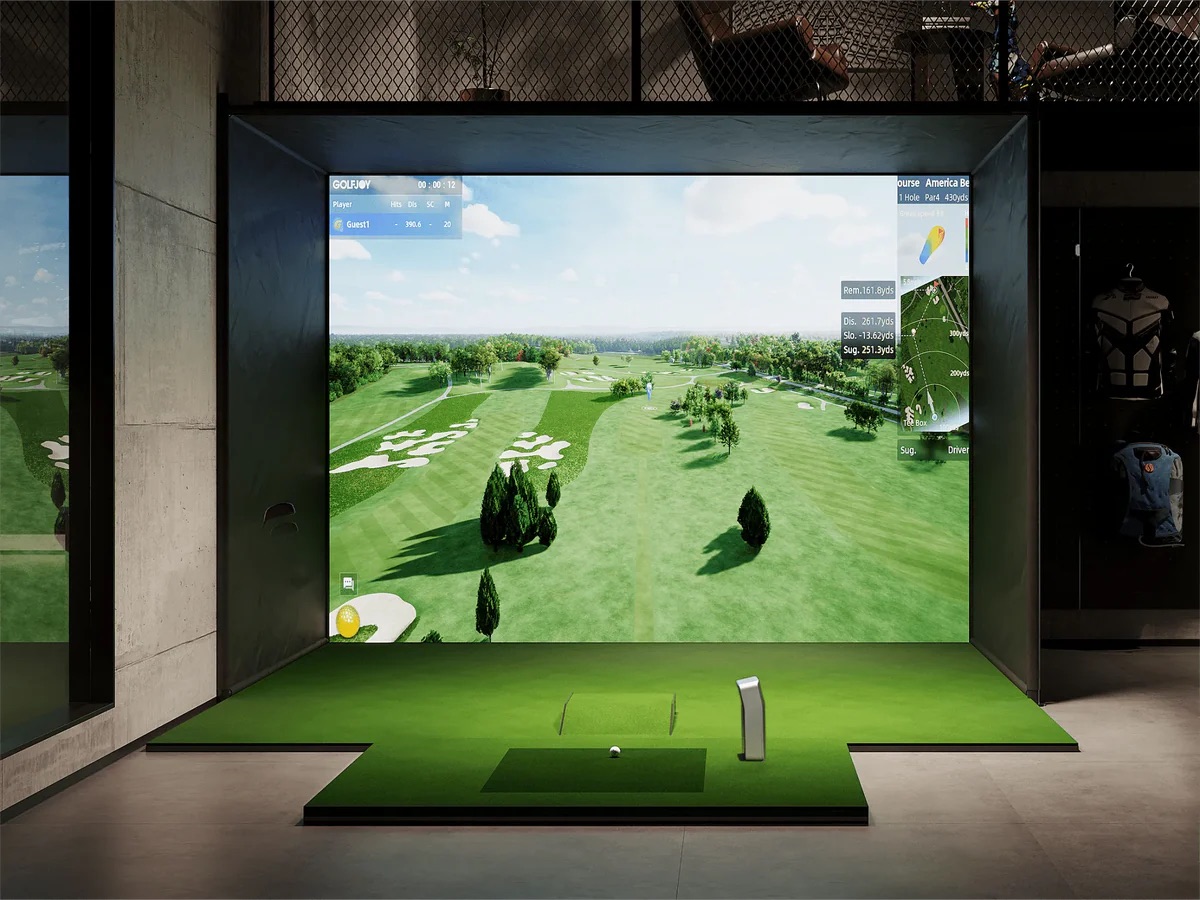 Choose a P7 or P8 for the complete golf experience. Includes enclosure, impact screen, mat, and advanced tracking. Plug in and play.